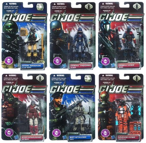 Case of 12 includes:2x Steel Brigade,2x Cobra Trooper The Enemy,2x Viper,2x Iron Grenadier ,2x Sgt. 3.75 inch figures,Multiple points of articulation Character specific accessories and weapons included .Also includes base stands